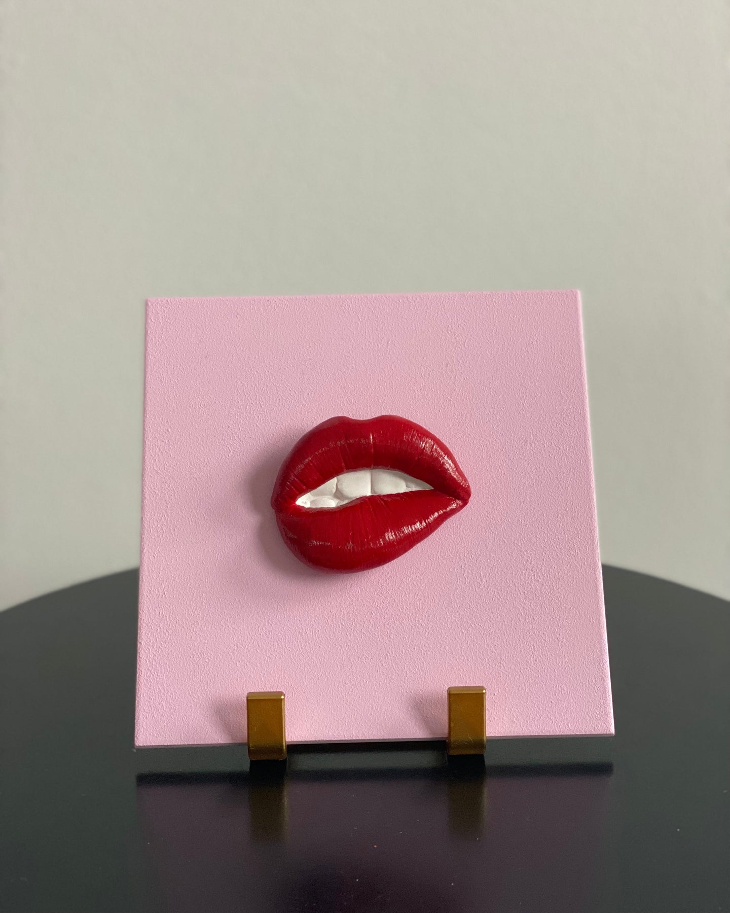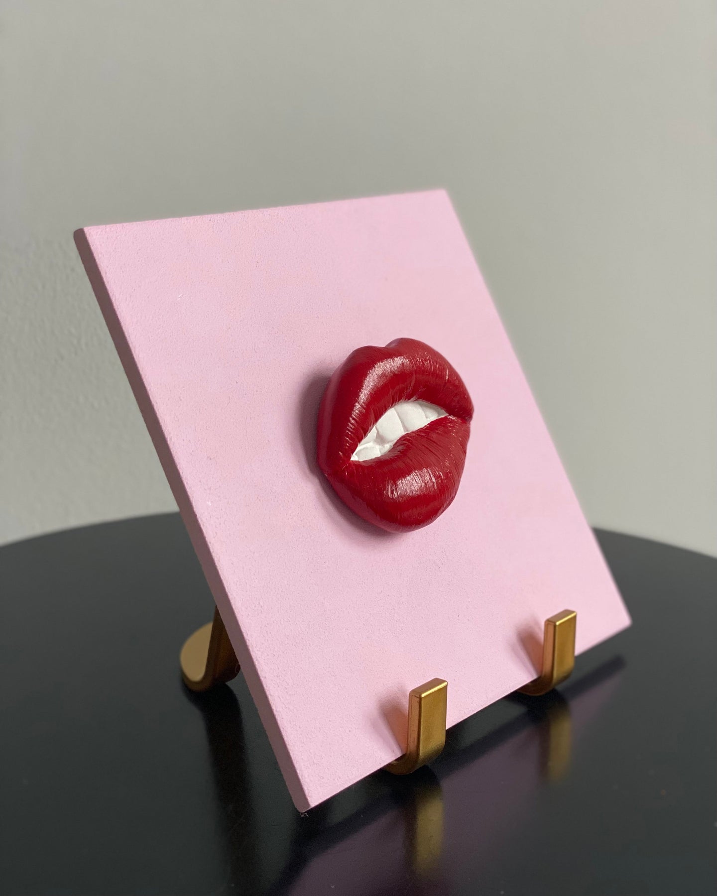 • Artwork L → 62 x 62 cm (incl. lijst) – 3d mond met structuur, met ophangsysteem