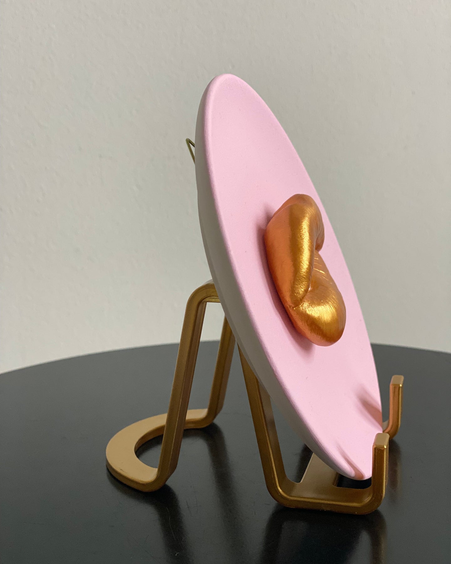 Ik ben zó blij met mijn 3D-kunstwerk van Nathalie: een prachtige gouden lip op een rond zwart bordje. Het is een echte eyecatcher in mijn keuken en past perfect in mijn stijl. Extra mooi is dat je dit kunstwerk in verschillende varianten kunt krijgen, zodat het altijd aansluit bij je eigen smaak. Een absolute aanrader!