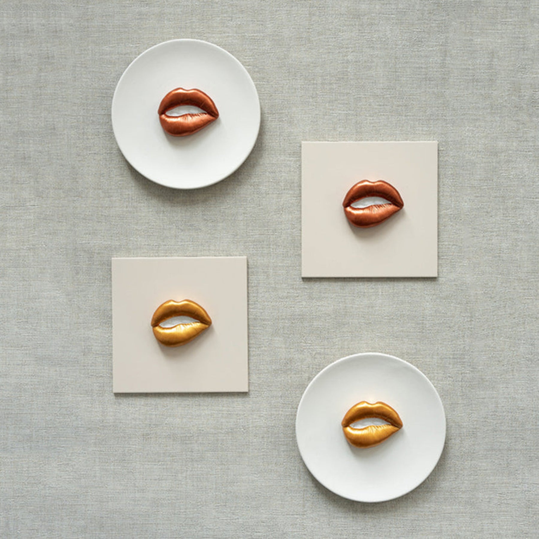 Bestel nu jouw handgemaakte 3D-bordje met gouden lippen en profiteer van 10% korting bij aankoop van twee stuks.