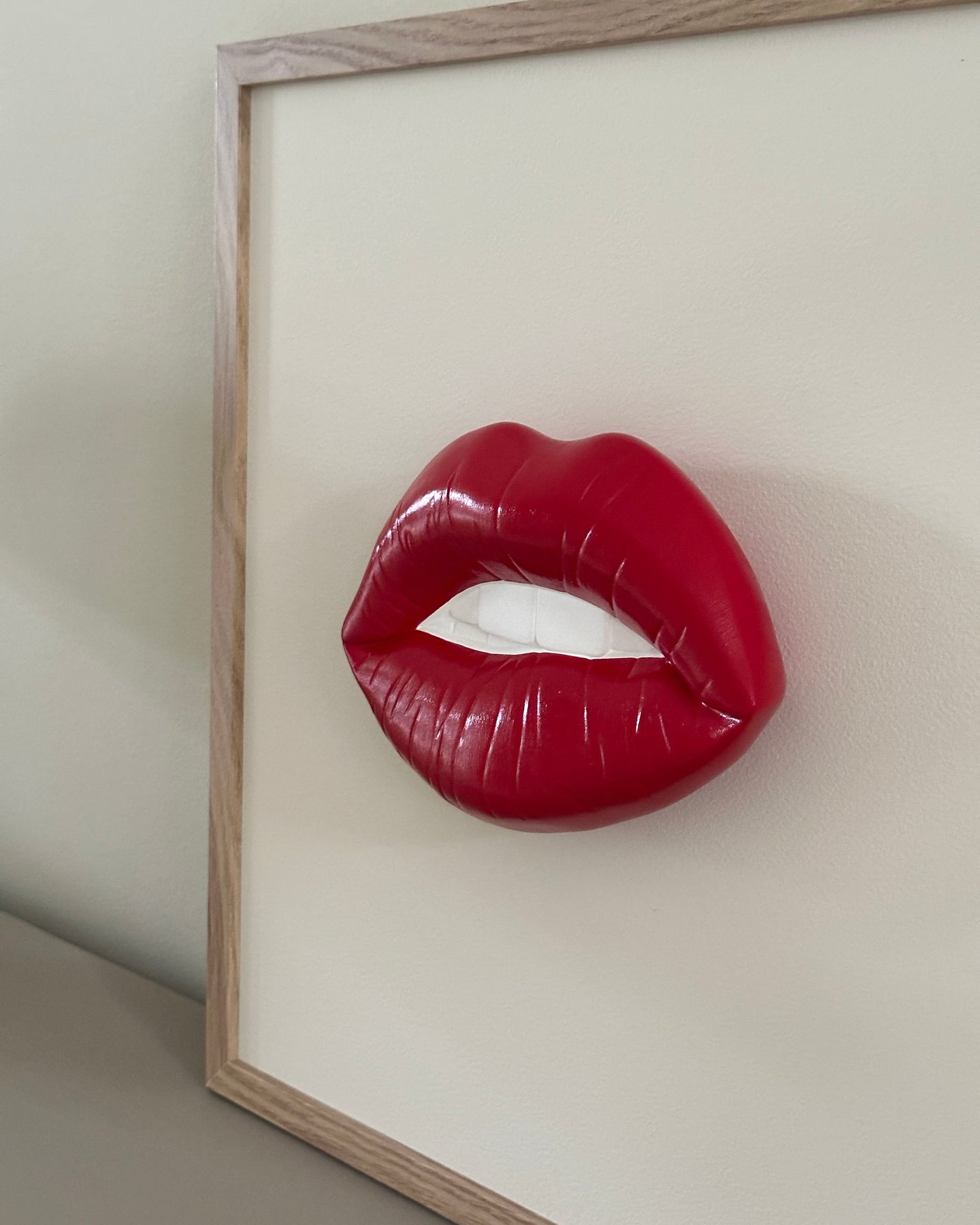 • Artwork XL → 82 x 62 cm (incl. lijst) – 3d mond met structuur, met ophangsysteem