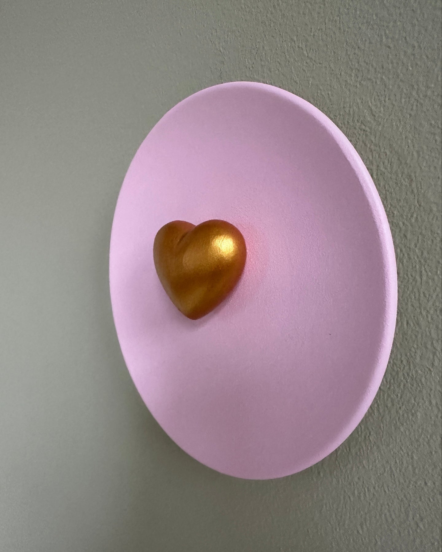 Keramieken bord roze met gouden 3D hart – 16 cm handgemaakt
