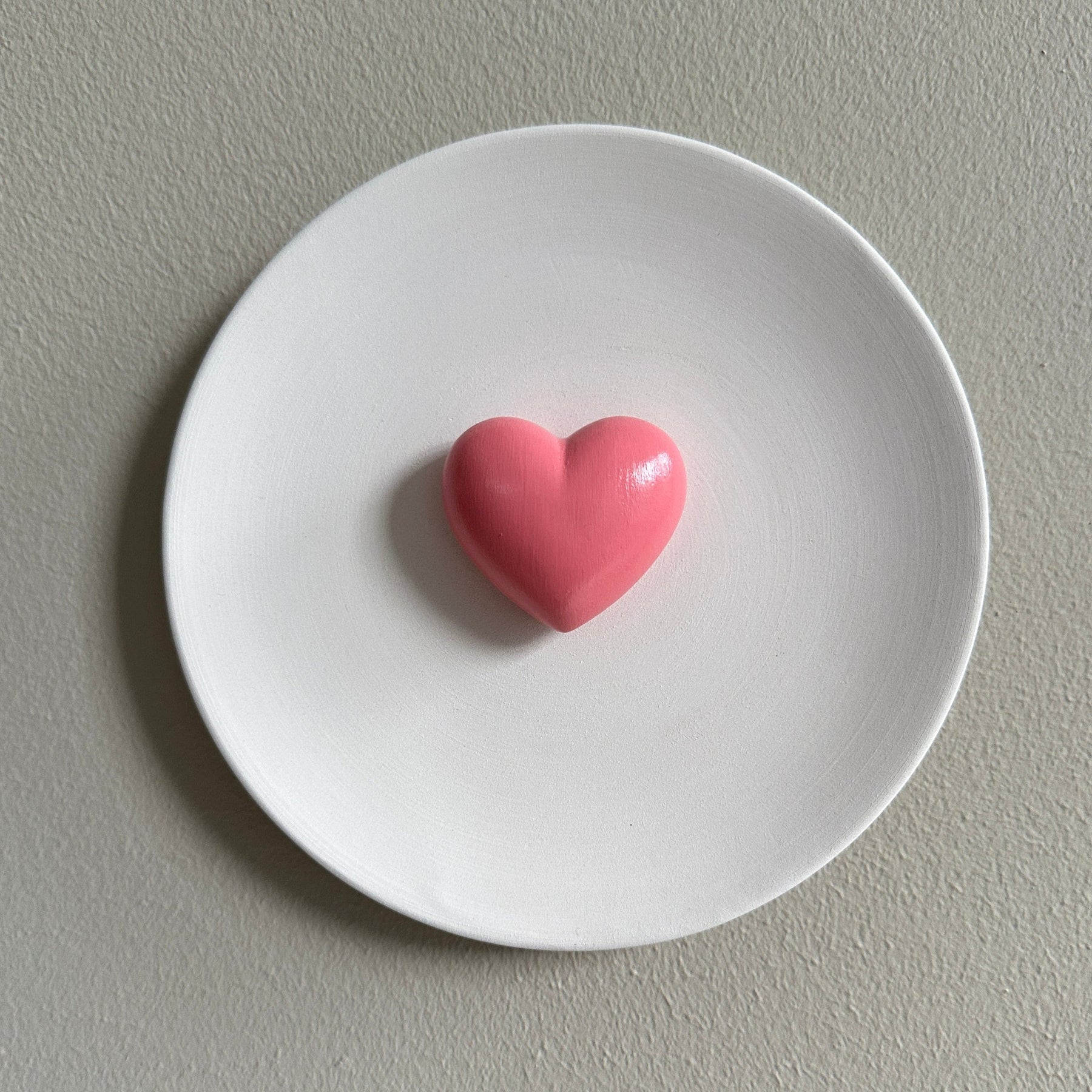 Keramieken bord off-white met 3D roze glossy hart - 16 cm
