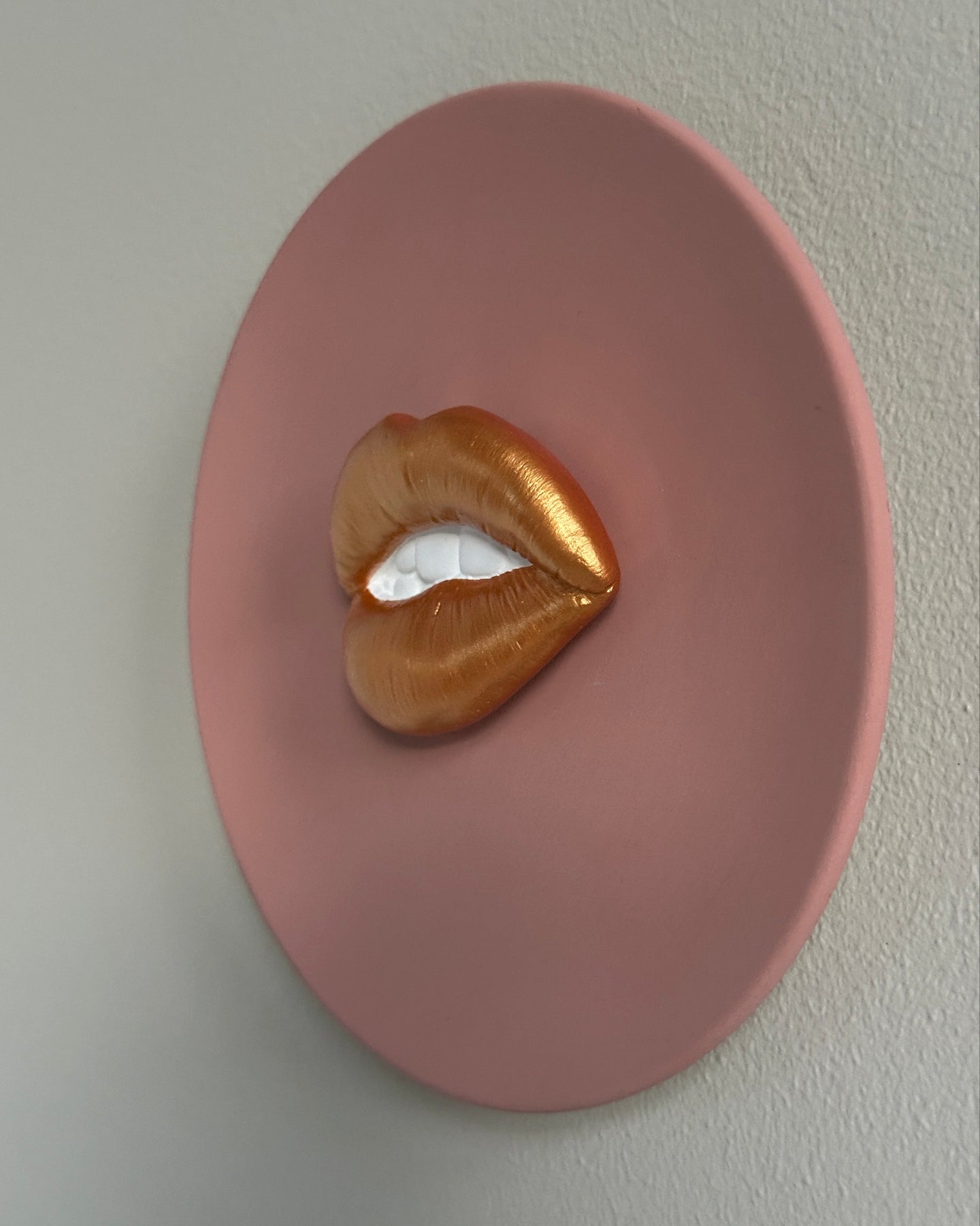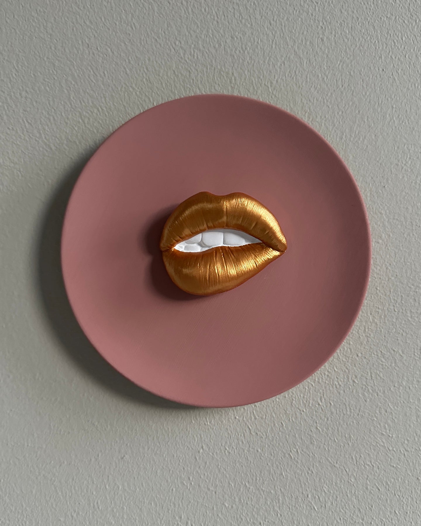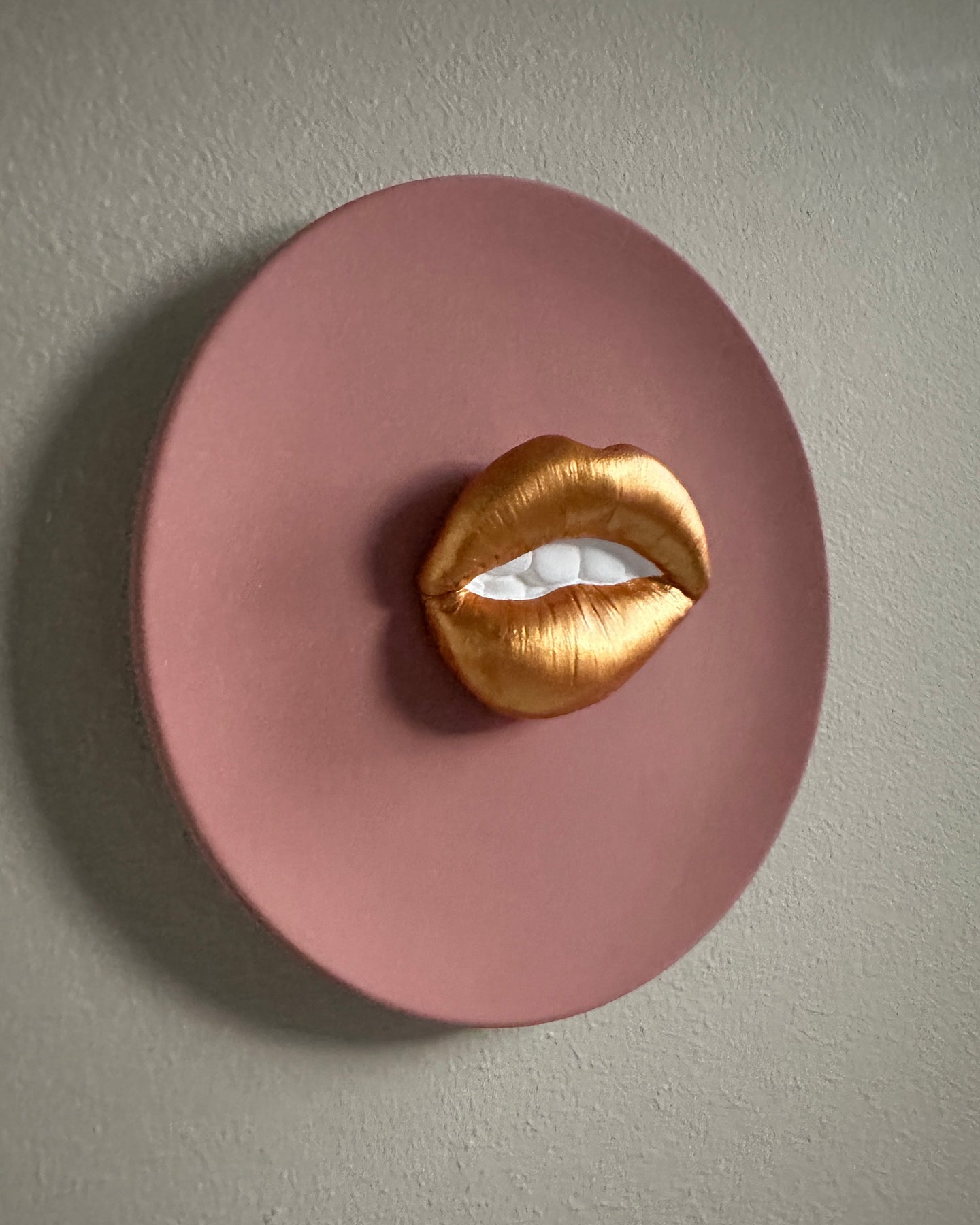 Rosewood keramieken wandbord met gouden 3D mond – 16 cm