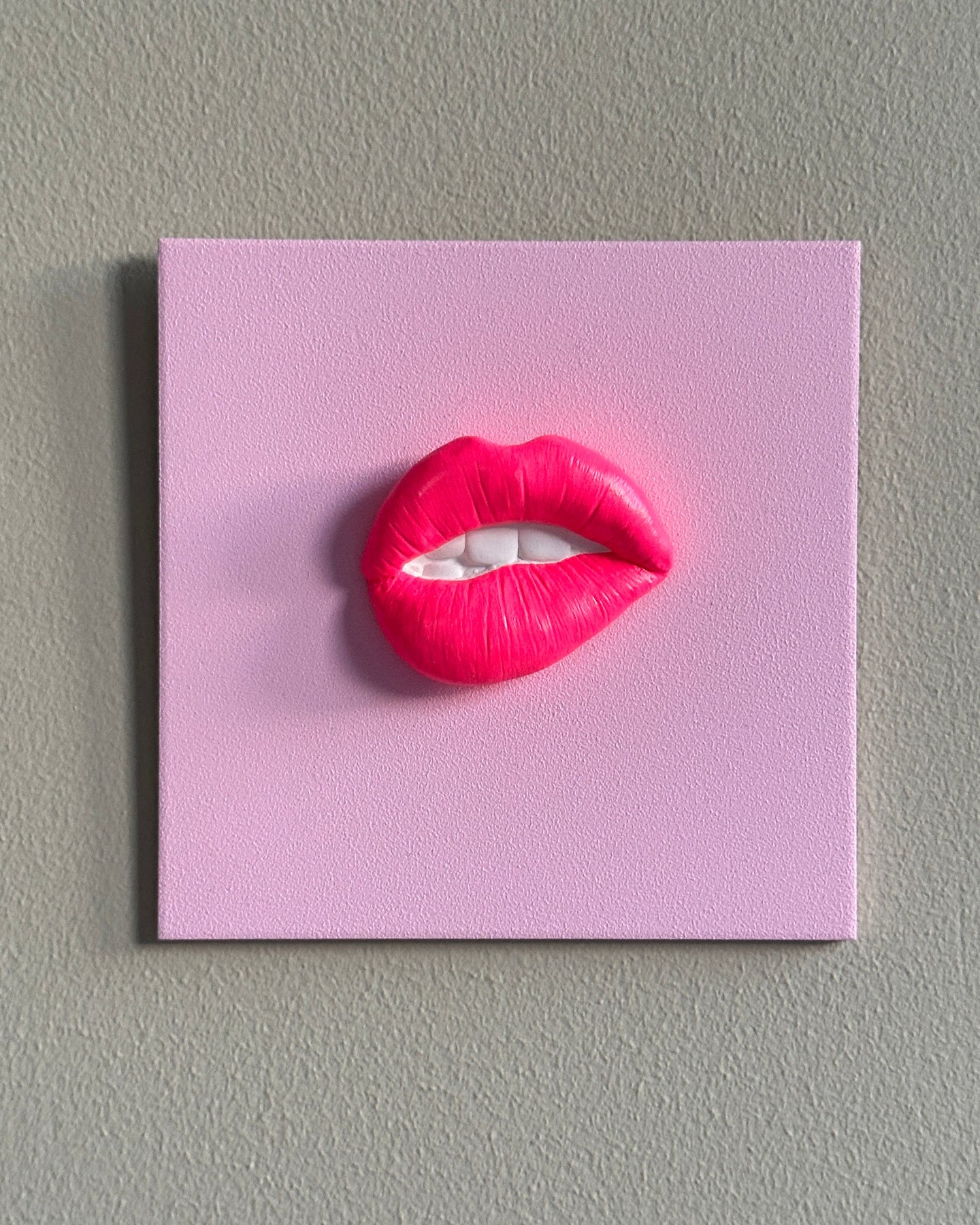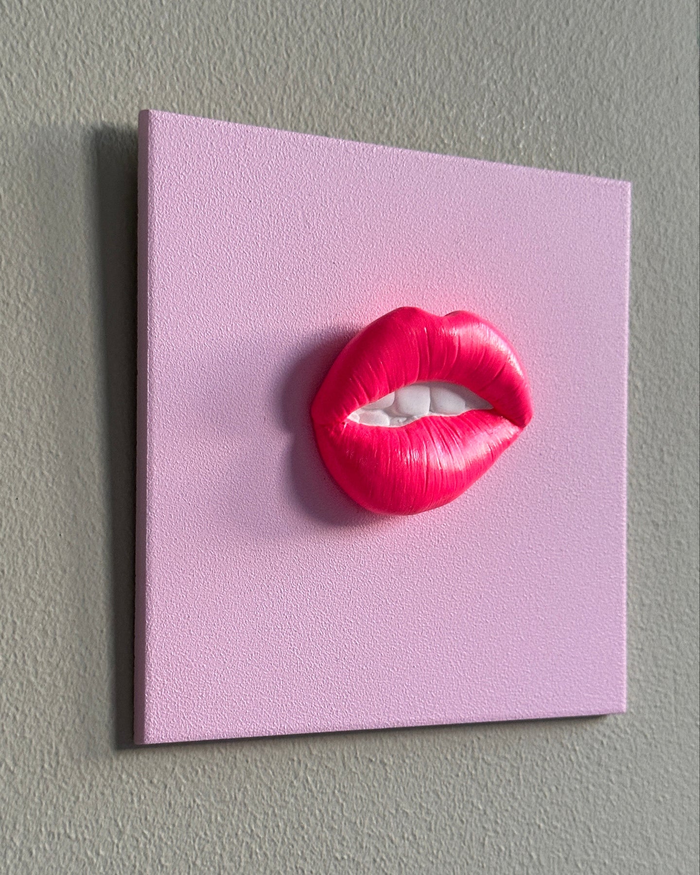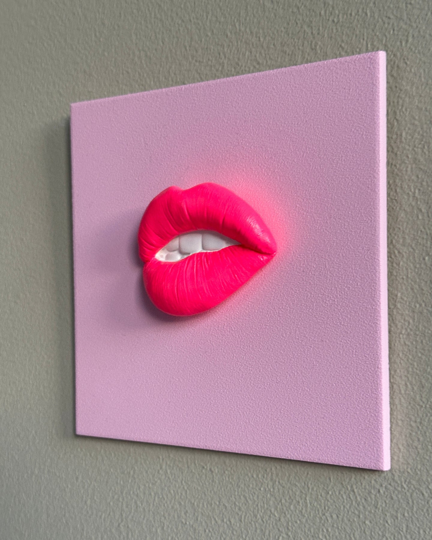• Artwork L → 62 x 62 cm (incl. lijst) – 3d mond met structuur, met ophangsysteem