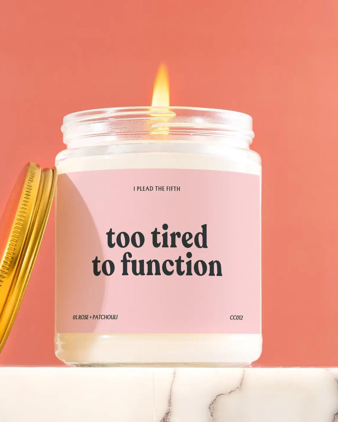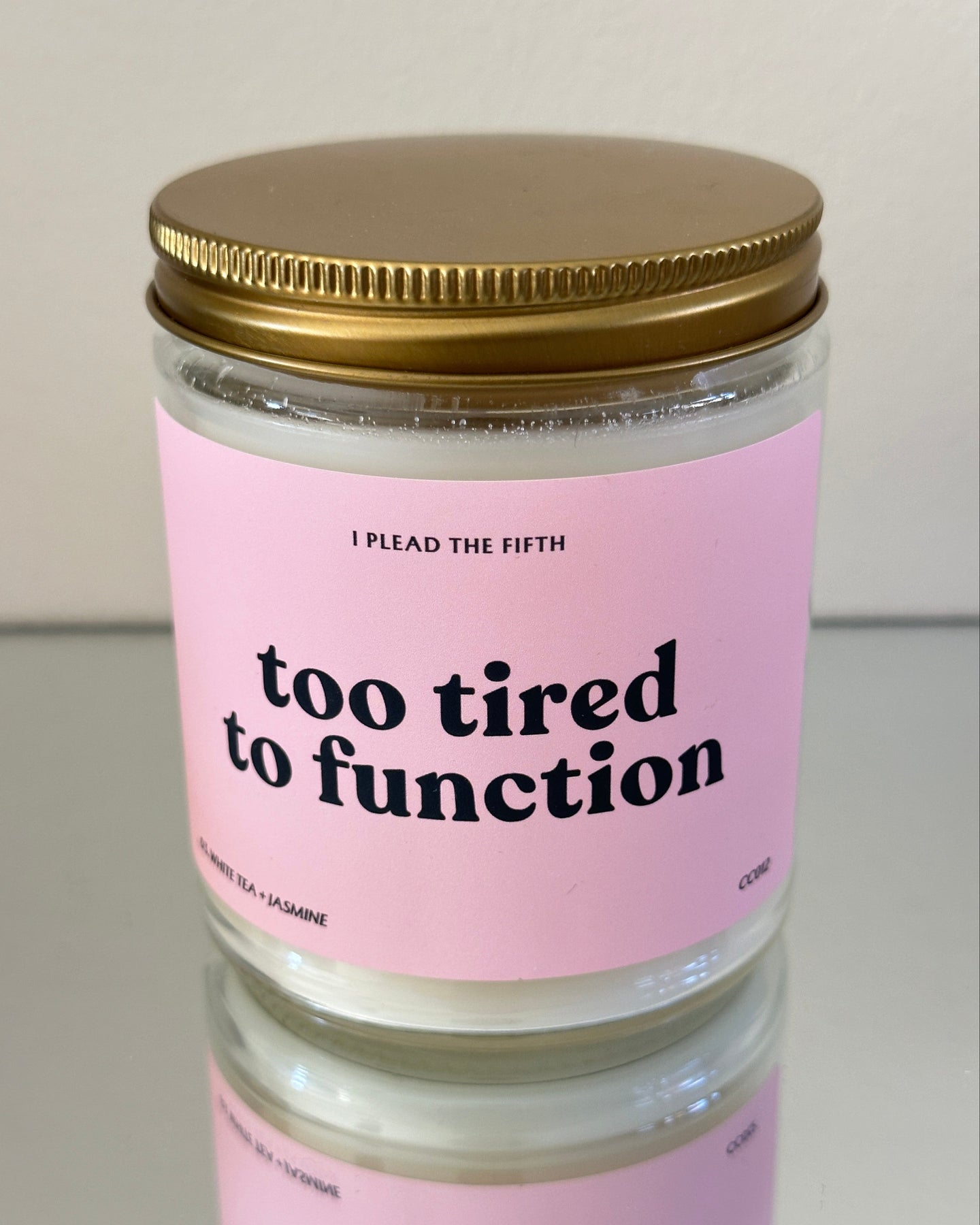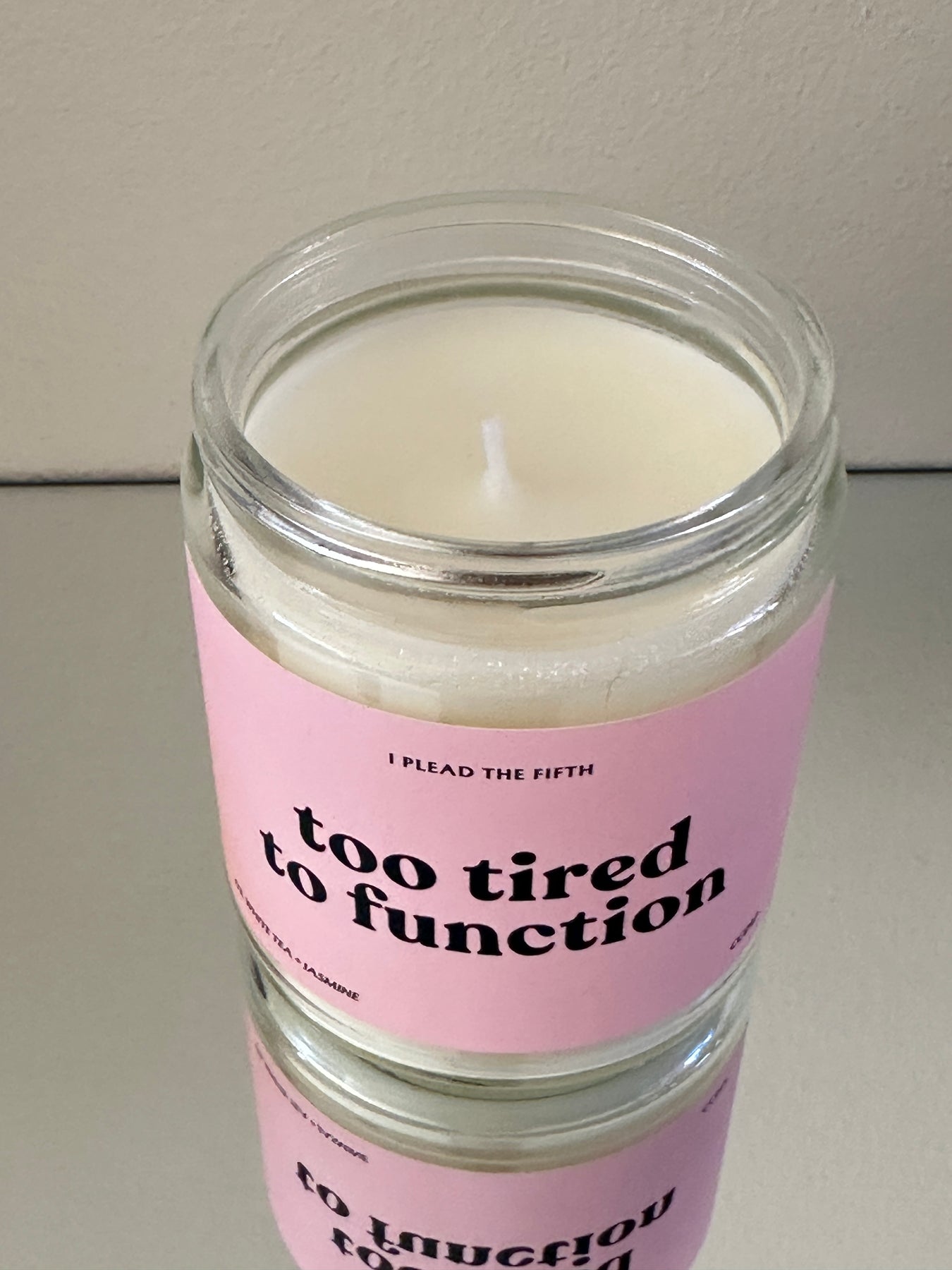 Geurkaars met tekst – Too tired to function | kaars soja wax